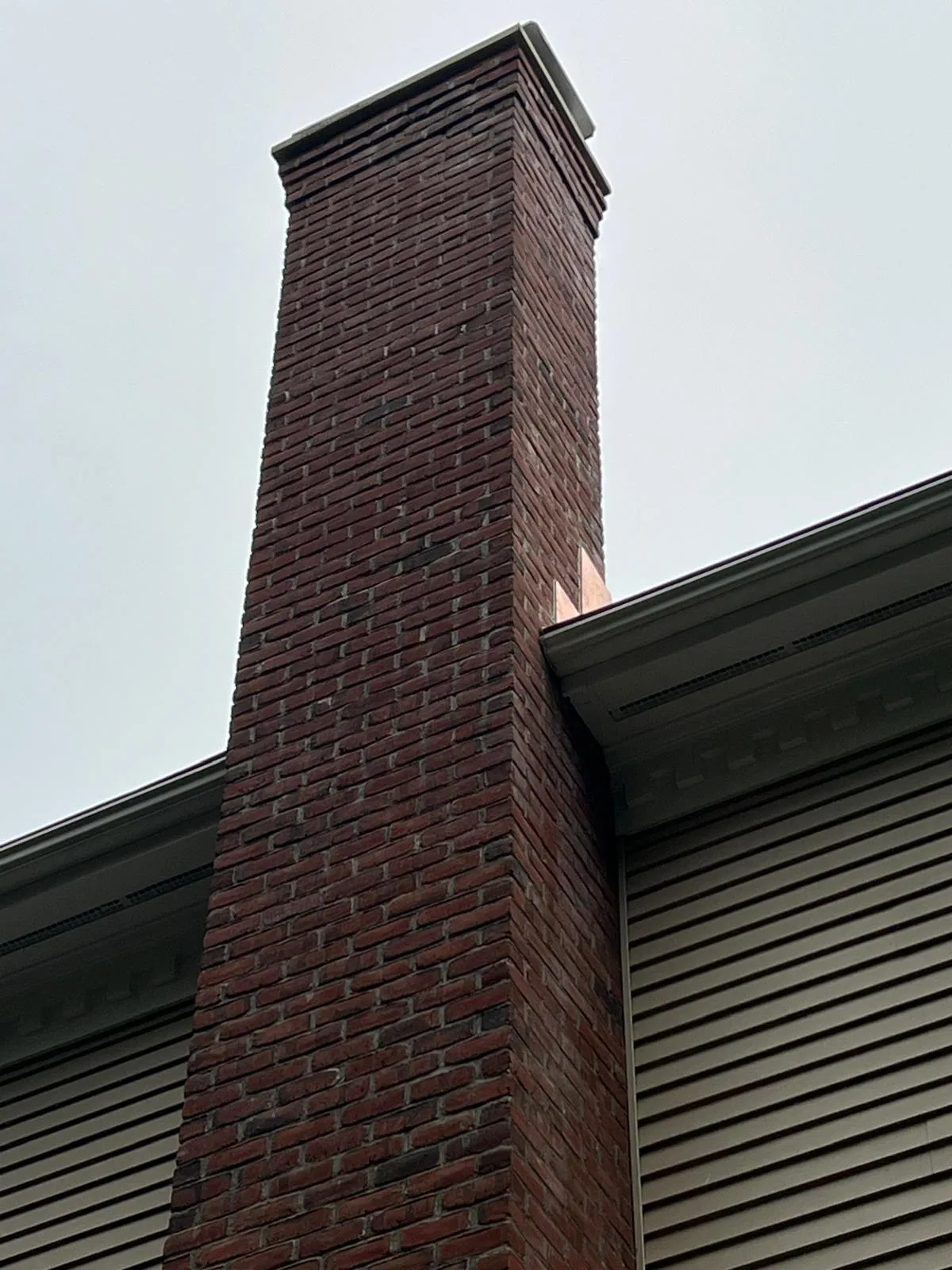 This project delivered a comprehensive chimney repoint in Milford, CT for a local residence. Our team first erected scaffolding to gain safe access to the tall chimney stack. After securing the site, masonry specialists reconstructed the brickwork with precise bricklaying and consistent mortar application. The crew also installed custom copper step flashing and handcrafted copper counter-flashing around the base. These critical components prevent water infiltration at the roofline and ensure a long-lasting, durable result.